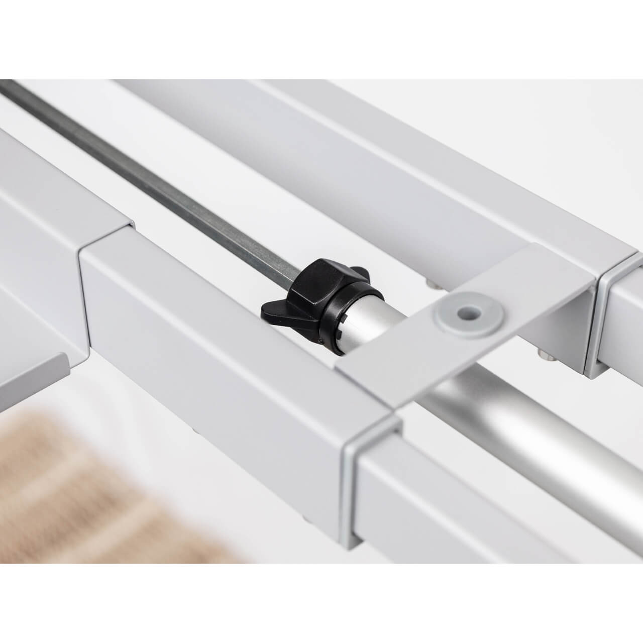 Stůl se nikde nekýve, deska drží tvar a to i v nejvyšší poloze. Na stůl můžete dát na jednu stranu až 100 kg a pořád bude rovný. Takže se nemusíte bát, že budete někde v oblacích vlát jako vlajka na stožáru.