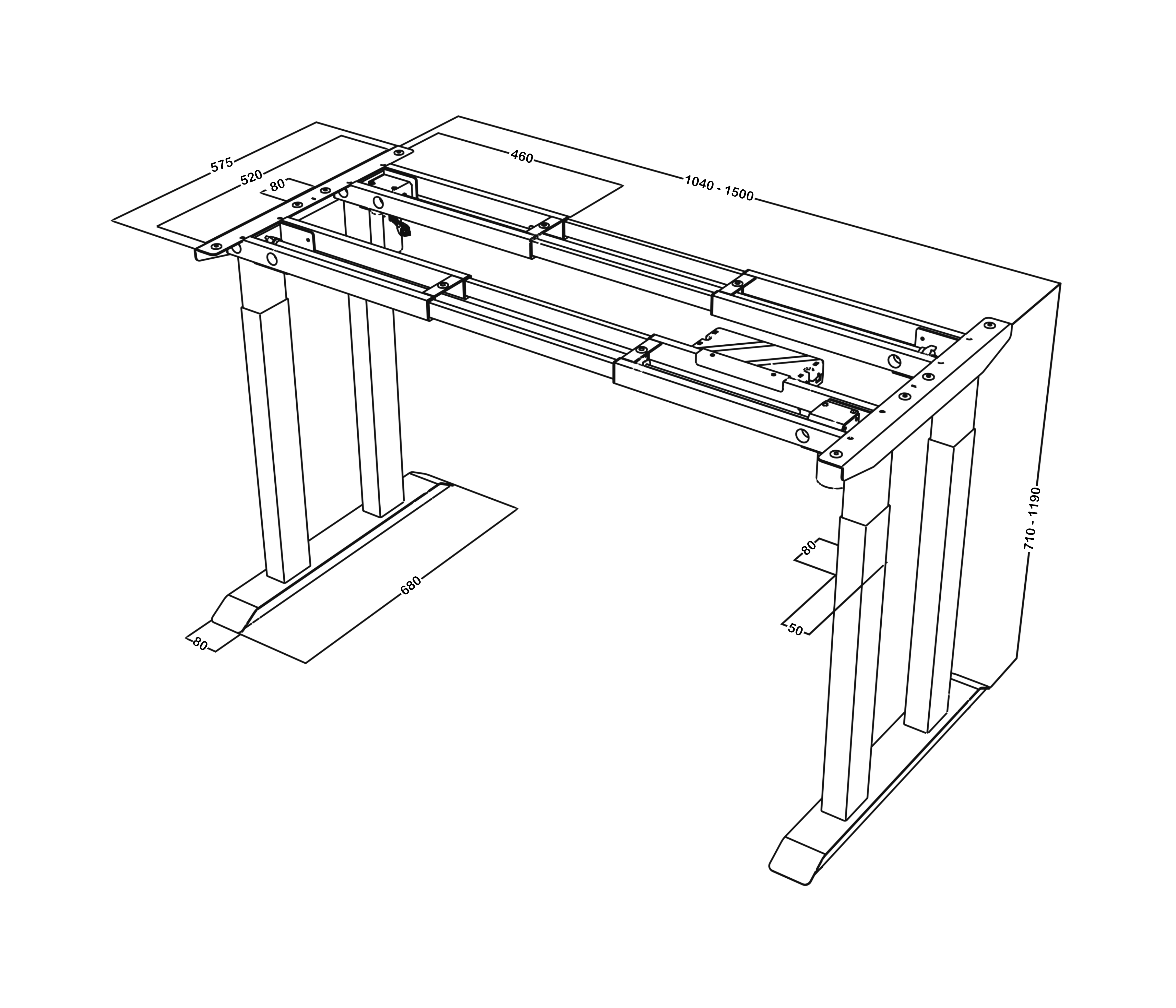 Stabilní, pevný, pěkná stolní deska, pěkný ovládací náboj, pěkné profily pro nastavení výšky, dostatečně lehký na to, aby se dal sestavit sám.