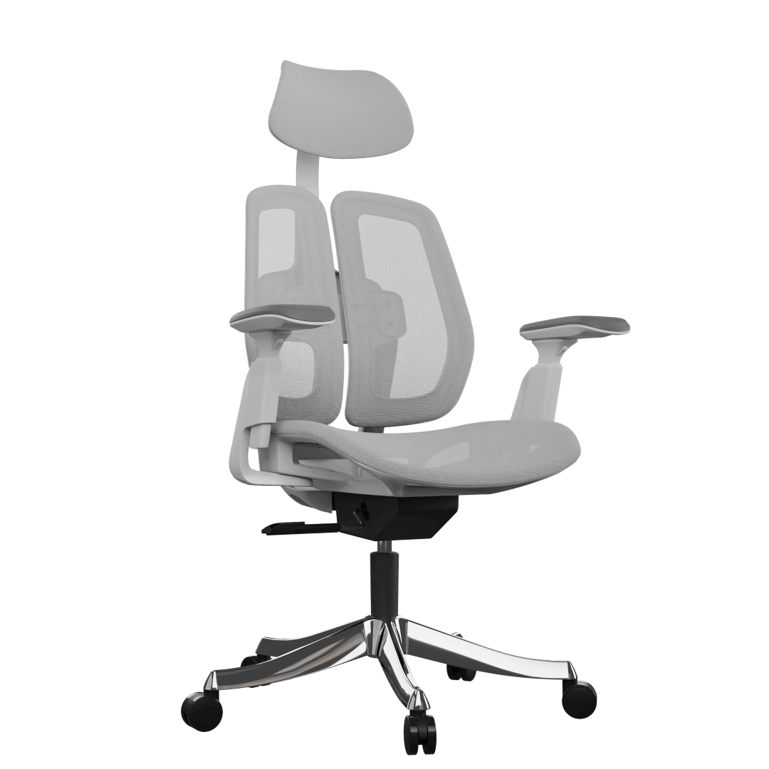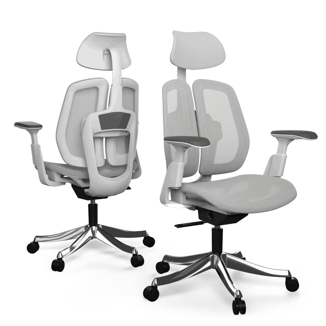 Inovativní dvoudílná zádová opěrka je má nezávislé uchycení obou částí. Každá část opěrky se pohybuje do všech stran a snadno se tak přizpůsobí vaší poloze při sezení. Vaše záda budou tak vždy mít ideální podporu a vám se tak bude lépe pracovat.