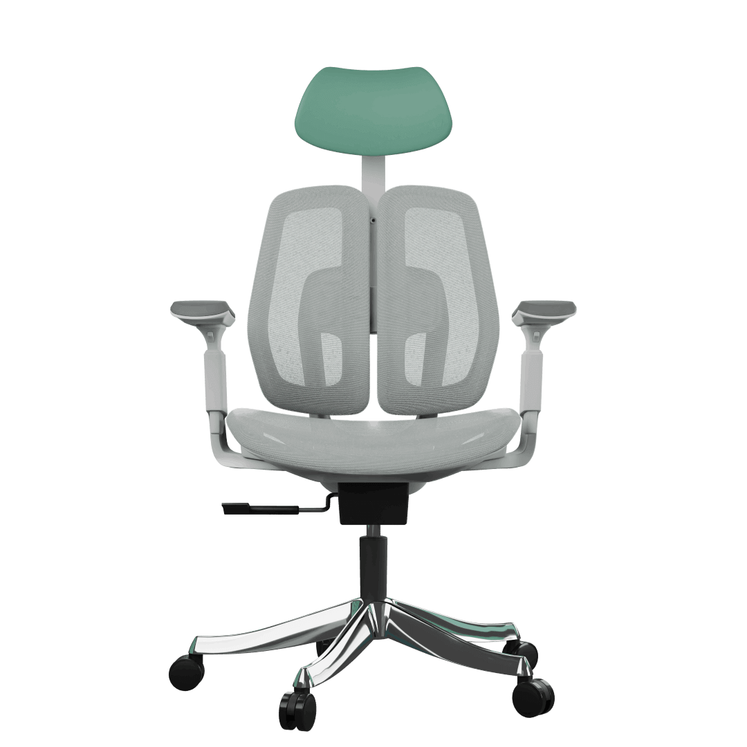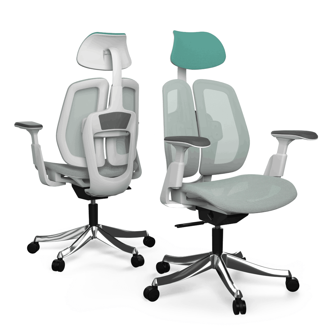 Inovativní dvoudílná zádová opěrka je má nezávislé uchycení obou částí. Každá část opěrky se pohybuje do všech stran a snadno se tak přizpůsobí vaší poloze při sezení. Vaše záda budou tak vždy mít ideální podporu a vám se tak bude lépe pracovat.