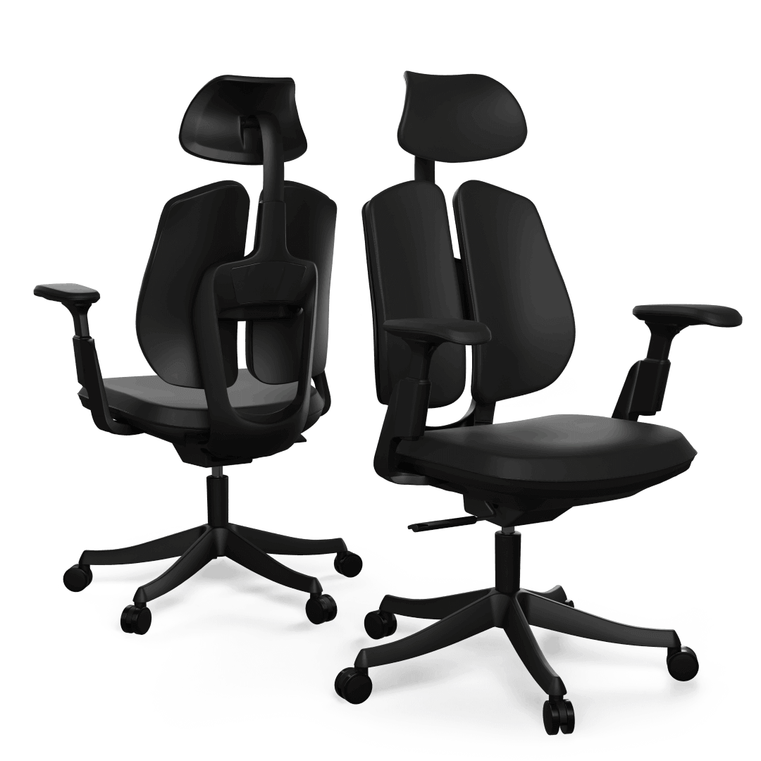 Inovativní dvoudílná zádová opěrka je má nezávislé uchycení obou částí. Každá část opěrky se pohybuje do všech stran a snadno se tak přizpůsobí vaší poloze při sezení. Vaše záda budou tak vždy mít ideální podporu a vám se tak bude lépe pracovat.