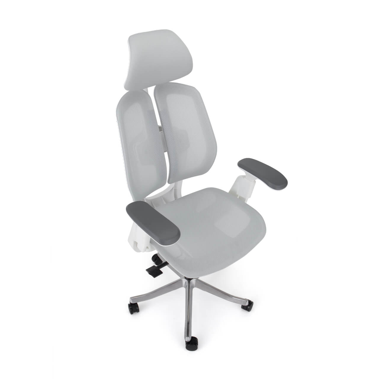 Inovativní dvoudílná zádová opěrka je má nezávislé uchycení obou částí. Každá část opěrky se pohybuje do všech stran a snadno se tak přizpůsobí vaší poloze při sezení. Vaše záda budou tak vždy mít ideální podporu a vám se tak bude lépe pracovat.